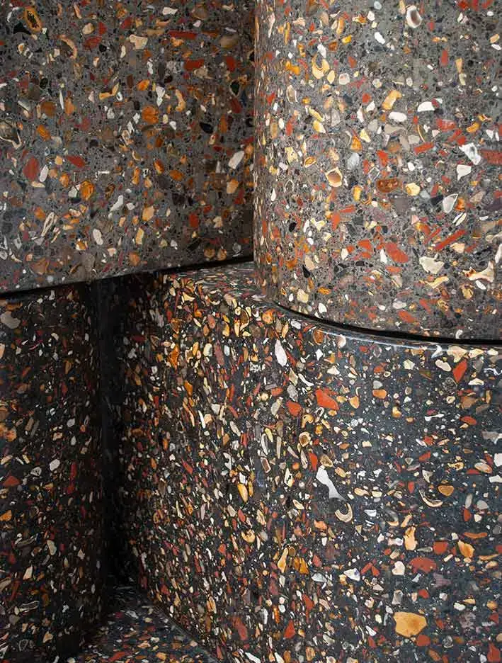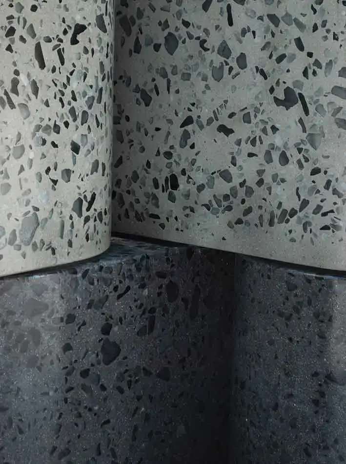 The Pre-Cast Concrete units which can be found at Zurich’s new development in Swindon Town Centre, used a unique blend of recycled and waste aggregates to create a collection of Waste-Based Terrazzo’s containing: